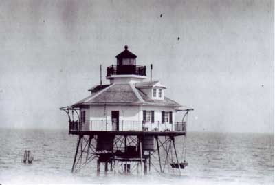 The Mobile Middle Bay Lighthouse is shown here in its prime. Coast Guard photo from the archives of Lighthouse Digest. Back to the edition of: August 2008