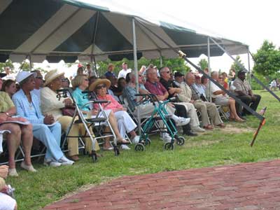 The young, the old, and even the infirmed, turned out for the dedication of the resurrection of history on St. Clement's Island, Maryland. Some of the old-timers remembered the original lighthouse. Photograph courtesy of the St. Mary's County Museum Division, Maryland. Back to the edition of: August 2008