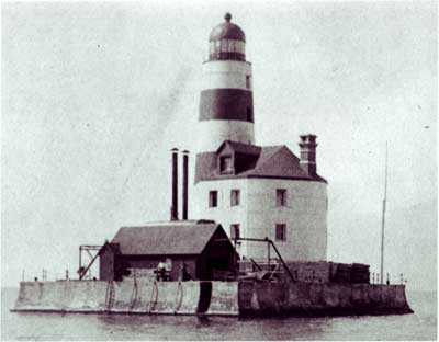 Waugoshance Lighthouse in the Straits of Mackinac in northern Lake Michigan where James Davenport served from 1871 to 1873, where William Duclon, husband of Julia Davenport, served from 1873 to 1874 and where Andrew Davenport served from 1874 to 1878. Today the lighthouse sits in ruins. Back to the edition of: August 2008