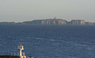 Photo taken from cliffs above Pittenweem. The Pittenweem East Breakwater Light can be seen in the foreground.
