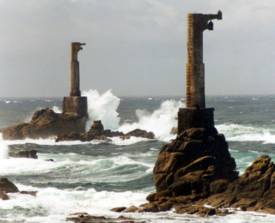 These towers served as supports for a cable car system that was used to carry fuel to the lighthouse until 1955.