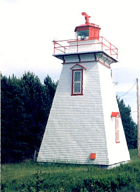 Tower Height: 33 Height of Focal Plane: 60 Characteristic and Range: White flash every 5 seconds, visible for 15 nautical miles. Description of Tower: White, square pyramidal wooden tower with red trim.