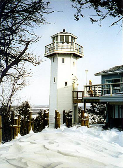Notes: This lighthouse was built by Bill Klauer. It once housed a gift shop and was adjacent to a bed and breakfast inn. It no longer stands. Tower Height: 61 Characteristic and Range: Flashing white every 18 seconds. Description of Tower: White, octagonal wooden tower, which no longer stands..