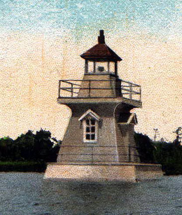 Notes: A replica of this lost lighthouse was built in the late 1990s and can be seen from Hwy 520 near the Distress River. Tower Height: 23 Height of Focal Plane: 21 Characteristic and Range: Fixed white, visible for 3 miles. Description of Tower: White, square, pyramidal wooden tower.