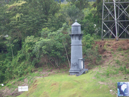 Notes: This lighthouse served to guide southbound ships on the Gamboa Reach from Gatun Lake to Gamboa. It has been replaced by a modern tower on the opposite (east) side of the Chagres River. It is reported to be in deteriorating condition, but a preservation effort is said to be underway. Tower Height: 45 Description of Tower: White conical tower.