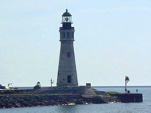 Date Established: 1818 Date Present Tower Built: 1833 Date Deactivated: 1914 Optics: 1857: Third order Fresnel lens; 1905: new third order Fresnel lens (moved to the Buffalo Outer Breakwater light in 1914 - now exhibited at the Buffalo and Erie County Historical Museum). Now fourth order Fresnel lens. Fog Signal: Originally fog bell. Current Use: Attraction on Coast Guard base. Open To Public? Special occasions only. Directions: The tower is open on occasion for special events. It is on a Coast Guard station; follow Fuhrmann Boulevard to the station. It can also be seen from the nearby Naval and Serviceman's Park in downtown Buffalo. It can also be viewed from cruises on the Miss Buffalo in summer; call 716-856-6696.