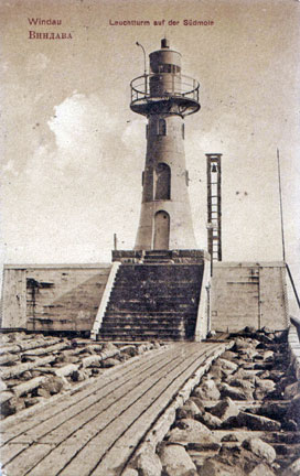 Notes: The city of Venspils was known as Windau in German. Tower Height: 36 Height of Focal Plane: 45 Characteristic and Range: Two green flashes every 3 seconds, visible for 3 nautical miles. Description of Tower: White, round concrete tower with a green lantern.