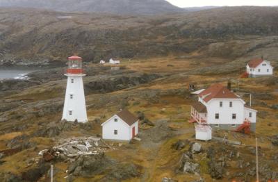 Earlier Towers? 1884: White square wooden tower with a red lantern, dwelling attached; focal plane height of 154 feet. 1908: White octagonal concrete tower with flying buttresses, 83 feet tall, focal plane height of 187 feet. Date Established: 1884 Date Present Tower Built: c. 1960s Date Automated: 1996 Fog Signal: Automated horn, three blasts every 30 seconds. Current Use: Active aid to navigation, inn. Open To Public? Yes. Directions: A half-hour boat ride through Iceberg Alley to and from the island is included in the price of a stay at the lighthouse. Mapquest URL: Click here to get a map to this lighthouse! Keepers: Edward Fountain (c. 1898). Nearby Lodging: The keeper's house is now a bed and breakfast inn. Call Linkum Tours at 877-254-6586 or email them at info@linkumtours.com for details.