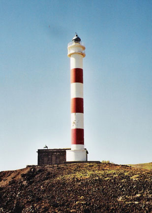 Notes: The keeper's house has been given to the municipality of Arico and is to be transformed into a restaurant school. Tower Height: 128 Height of Focal Plane: 177 Characteristic and Range: Three white flashes every 20 seconds, visible for 17 nautical miles. Description of Tower: White cylindrical tower with three red bands, two galleries; dwelling adjacent.