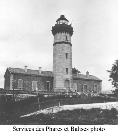 Notes: This lighthouse, built on a hill about a mile inland, marks the east coast of Corsica between Bastia and Solenzara. The tower suffered some damage during World War II (1943) but was repaired in 1945. Tower Height: 89 Height of Focal Plane: 305 Characteristic and Range: Two white flashes every 10 seconds; range 22 nautical miles. Description of Tower: Grey octagonal masonry tower with a black lantern and gallwery, attached to a rectangular brick dwelling.