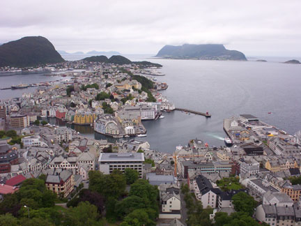Notes: Correct spelling "Ålesund" Height of Focal Plane: 26 Characteristic and Range: Occulting once every 6 seconds; range 10 (white), 8 (red), and 7 (green) nautical miles. Description of Tower: Red cylindrical tower; white lantern with red roof.