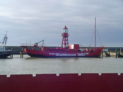 Notes: This lightship was built in 1949 for Trinity House in England. It served at the Kentish Knock station (1949-53), the Sunk station (1956-59), the Dudgeon station (1959-62), the Outer Gabbard station (1962-65), and the Tongue station (1965-75). It was sold into private ownership in 1991. Radio Waddenzee bought it in 2005. It is used by Radio Waddenzee and Radio Seagull, and also by the Maritime Academy and the Sea Cadets. For more information, see www.feuerschiffseite.de/SCHIFFE/ENGLAND/LV08/lv08gb.htm Description of Tower: Red 137-foot steel-hulled lightship with one light tower.