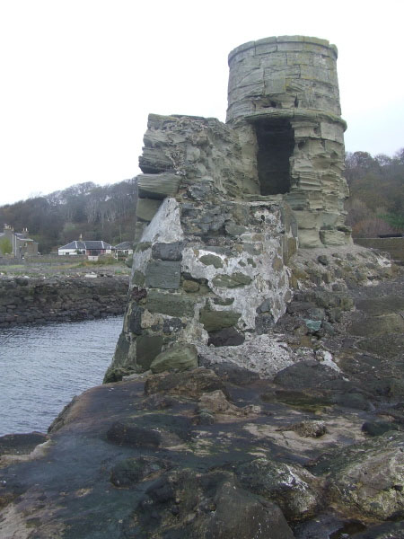 Notes: A coal fire in this lighthouse was lit only when incoming vessels were expected. A seaward opening at the level of the brazier was blocked by a door, which was opened only when the lights of incoming boats were seen. The wall next to the tower prevented the fire being seen from vessels too far to the north; when the light came into view the boat had cleared the dangers off the harbor mouth. Description of Tower: Conical sandstone tower.