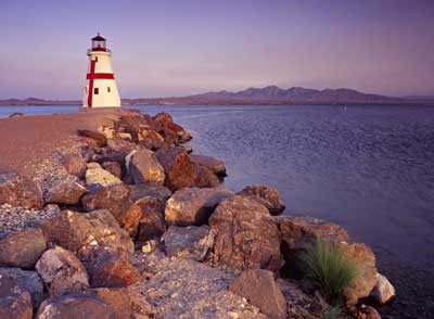The replica of New Brunswick Canada's Head Harbour Lighthouse is located at the intersection of Windsor Beach and Bridgewater Channel in the Lake Havasu State Park. Much to the dismay of the Canadians and many true lighthouse aficionados, the lighthouse is often referred to as East Quoddy Lighthouse. Back to the edition of: September 2009