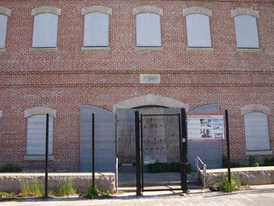 One of the buildings of old Lighthouse Depot on Staten Island stands boarded up behind a fence. A sign on the fence tells about the National Lighthouse Museum. (Photograph by Richard Schmeelk, Jr.) Back to the edition of: October 2009