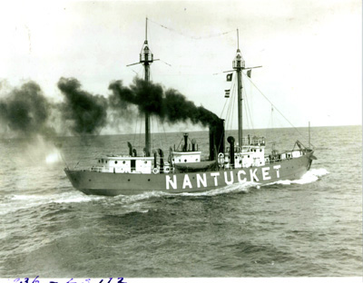 The Nantucket Lightship LV-112 when it was a steam powered vessel. Among its many United States distinctions; it is the largest lightship ever built; it is the heaviest lightship ever built, it served on the last lightship station to be discontinued (1983); at 100 miles from the mainland, it was the farthest offshore lightship; it was built to the specifications of a battleship; and it is the only United States lightship to serve in international waters. In 1960 major modifications were made to the vessel. At that time it was changed to a diesel powered vessel and its smokestack was removed.