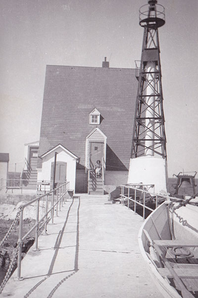 Gull Rocks Lighthouse in Newport Harbor, Rhode Island from a photo taken in March of 1941 by Mrs. Clarence Allison. Sitting on the steps of the keeper’s house is Ann Allison. (Lighthouse Digest archives.) Back to the edition of: Mar/Apr 2017