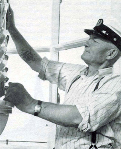 Lighthouse keeper Edward D. Elliot cleaning the lens at Cape Elizabeth Lighthouse. This lens is now at the Maine Maritime Museum in Bath, Maine where a new exhibit of the lens will open on June 17, 2017. (Photo courtesy Karin Elliot Whitney.) Back to the edition of: May/Jun 2017