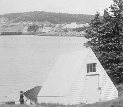 The original boathouse at Little River Lighthouse in Cutler, Maine. It was near the boathouse where the bodies of the two shipwrecked sailors were buried. Eventually, this boathouse was demolished and replaced with a new boathouse that is still there but has been restored. (Lighthouse Digest archives.) Back to the edition of: Nov/Dec 2017