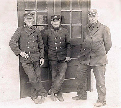 Lighthouse keeper Willard D. Miller is shown here in the middle at the Los Angeles Harbor Lighthouse where he was the keeper from 1915 to 1922. The man on the left of the photo is likely Frank Weller who was the 1st assistant keeper from 1916 to 1922 and later became the head keeper. (Courtesy Earle Miller.) Back to the edition of: May/Jun 2018