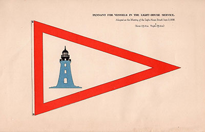 This was the first design of the U.S. Lighthouse Service flag. In later years, to make sewing it less difficult, the lighthouse tower was redesigned to make it less elaborate. (Lighthouse Digest archives.) Back to the edition of: Jul/Aug 2018