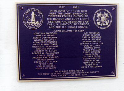 The new plaque honoring the keepers of the Tibbetts Point Lighthouse in Cape Vincent, NY. Back to the edition of: September 2010