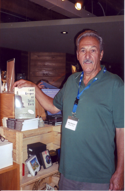 Mike Roberts, the last keeper at Split Rock Lighthouse, standing inside the Interpretive Center at Split Rock Lighthouse on July 31, 2010, holding a copy of his new book, The Last Keeper at Split Rock. (Photograph courtesy Mike Roberts.) Back to the edition of: October 2010