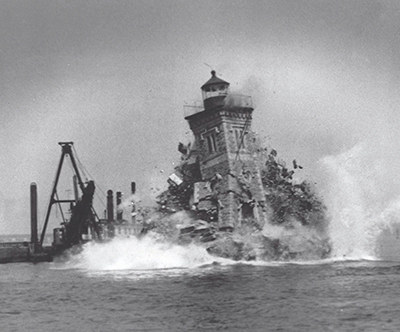 On June 19, 1951, the Bergen Point Lighthouse tower was blown up, totally destroying all vestiges of what was once a proud light station where keepers and their families once lived and dedicated themselves to the safety of others. Amazingly, no efforts were made to save the lantern, which today would have been a great historical artifact to be viewed by future generations. (Staten Island Advance original photo from the Lighthouse Digest archives)