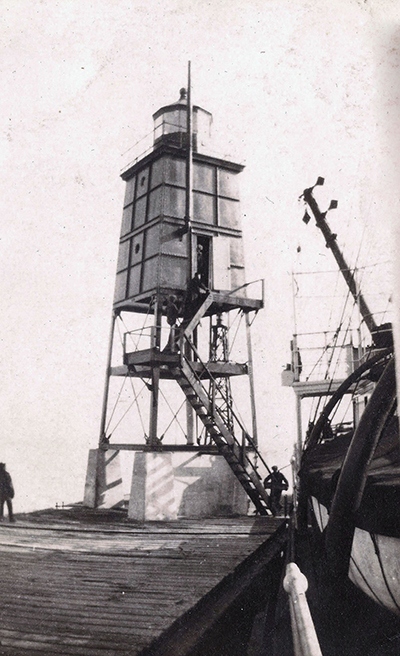 The Lighthouse Service tender Sumac tied up by Racine Breakwater Lighthouse in 1924 as it prepares to lift the machinery for the fog horn into the lighthouse. (Courtesy Colton Schroeder) Back to the edition of: May/Jun 2020