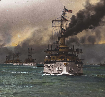 The Great White Fleet’s flagship, Connecticut, is under full steam with billowing smoke as it leads the 16-battleship armada into San Francisco Bay on May 6, 1908. (Magic Lantern slide, Lighthouse Digest archives) Back to the edition of: Jul/Aug 2021