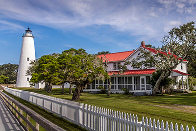 Ocracoke Lighthouse Station on Ocracoke Island, North Carolina. As well as being threatened by rising water levels, the lighthouse bricks and mortar are deteriorating from moisture trapped by a coat of concrete that was applied to its exterior nearly 70 years ago. (Lighthouse Digest archives) Back to the edition of: Jul/Aug 2021