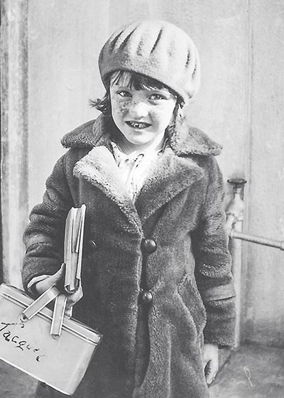 Jacquelyn Schneider is ready for school, c. 1934. Around this time, Al Capone was Jacquie’s shoe repairman. According to Jacquie’s daughter, Chellie, “Capone worked in the shoe repair shop so he could have a tool to defend himself since several other prisoners wanted to kill him. Jacquie recalled seeing his mistress visit him once a month. She knew it was his mistress because she was always colorfully dressed; whereas Capone’s wife was very dour and only visited once a year.” (Courtesy of Michelle Campbell Hamecs)