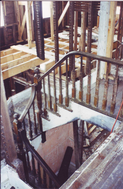 The fire-damaged stairway railing in the keeper’s house is shown here among the repairs being made to restore the interior of the Heron Neck keeper’s house in August 1994. (Lighthouse Digest archives photo by Timothy Harrison.) Back to the edition of: Mar/Apr 2011