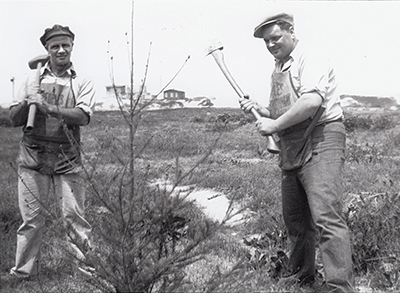 Walter White and his assistant, Lewis Oppel, cut down a small Christmas tree while serving at Point Hueneme Lighthouse together from 1933 to 1935. Walter’s granddaughter, Carol, remembers that there were trees other years that reached the ceiling of the parlor in the old lighthouse. (Courtesy of Betty Westby) Back to the edition of: May/Jun 2022