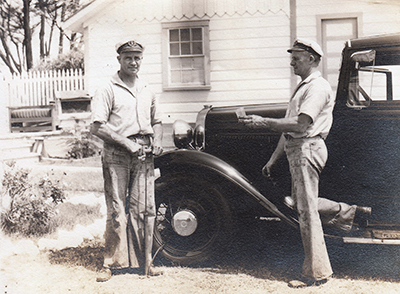 Walter White is handing himself a cup of water while he is pumping up his car tire in this fun double-exposure image, taken at Point Hueneme Lighthouse. Note the old-fashioned tire pump he is using. (Courtesy of Betty Westby) Back to the edition of: May/Jun 2022