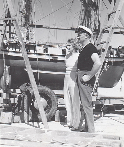 In 1939, Captain Caution, starring Victor Mature, was filmed at Point Hueneme Lighthouse. Walter White was asked to be a consultant on the movie since he had spent years on tall sailing ships. One of the movie prop ships is on the trailer behind him and Frankie. (Courtesy of Carol Hill) Back to the edition of: May/Jun 2022