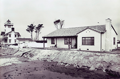 Walter and Frankie White are on the porch of the newly constructed keeper’s house at Point Hueneme Lighthouse in 1940 near the dredged channel. Note the Fresnel lens clearly visible in the old lighthouse tower that soon would be removed when the new lighthouse was completed later that year. (Courtesy of Betty Westby) Back to the edition of: May/Jun 2022