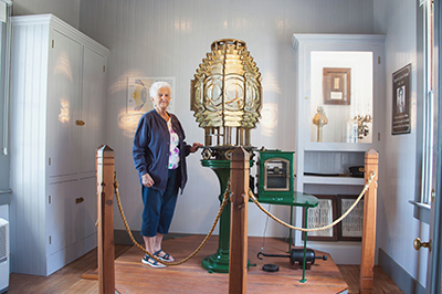 July 2022 photo of Dottie Orford with the Fresnel lens. When Dottie and her family were stationed at Point San Luis, the Fresnel lens was the lighthouse beacon. (Courtesy, Bob Mihelic) Back to the edition of: Jan/Feb 2023