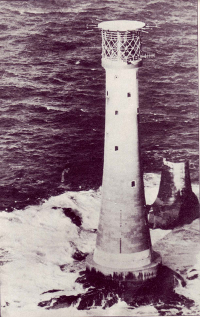 In 1980 the appearance of the Eddystone Lighthouse was significantly altered when a helipad was installed at the top of the lighthouse. (Lighthouse Digest archives.) Back to the edition of: Mar/Apr 2011