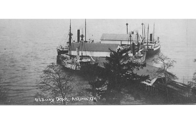 This old postcard of the Tongue Point Lighthouse Buoy Depot, which was also referred to as the Astoria Buoy Depot, clearing shows the Relief Lightship 92, the Swiftsure Lightship and another unidentified lightship and two lighthouse tenders. For a small depot, it shows a lot of activity. (Courtesy Judi Kearney.) Back to the edition of: May/Jun 2011