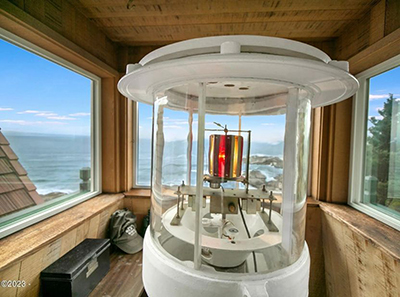 The 300mm acrylic beacon from the Solander Island Lighthouse is still in the lantern of the Cleft of the Rock Lighthouse near Yachats, Oregon. (Lighthouse Digest archives) Back to the edition of: Sep/Oct 2023