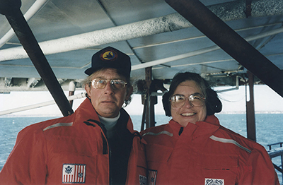 Marie Vincent with her husband Jerry Waters at the Thomas Point Shoal Lighthouse in the 1990s. Back to the edition of: Jul/Aug 2024