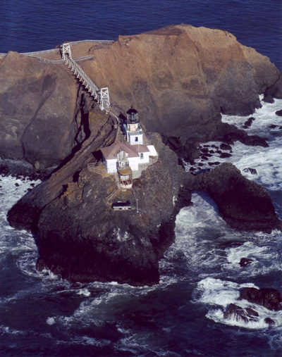 Aerial view of Point Bonita Lighthouse with its original suspension bridge Back to the edition of: Jul/Aug 2012