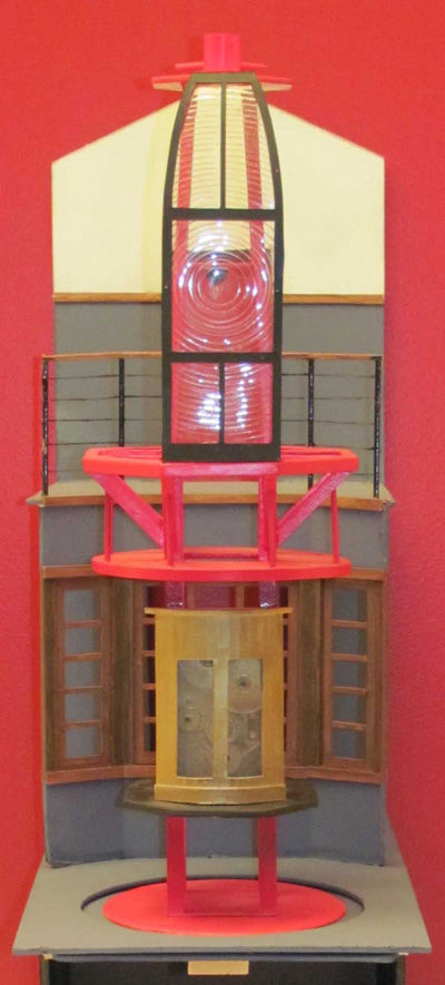 This scale model gives an idea of what the new Point Conception Lighthouse lens exhibit will look like when it is completed. It will be visible from two floors. Back to the edition of: Sep/Oct 2012