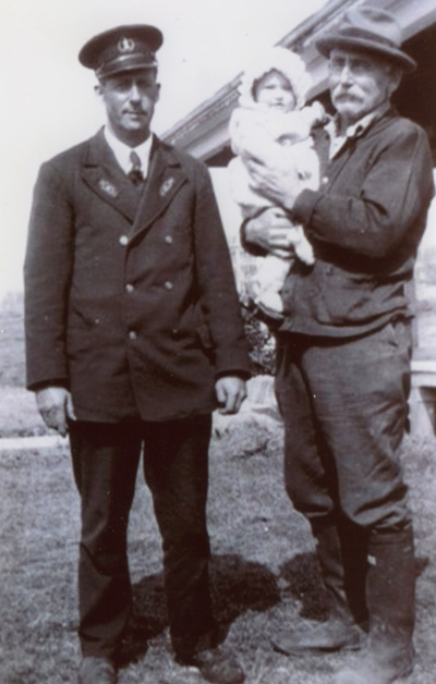 Forty-six year old Two Bush Island lighthouse keeper Fred Batty (l) is shown with Robert Ettinger Singer, age 63, holding four month old Nancy Louis Singer at the lighthouse in April of 1943. Batty had previously been stationed at Maine’s Boon Island Lighthouse. (Diana Tromley collection, Lighthouse Digest archives.) Back to the edition of: Jan/Feb 2013
