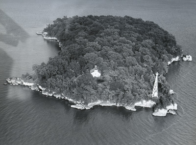 Green Island Lighthouse, Lake Erie, Ohio showing the original lighthouse and the skeletal tower where the replacement light was placed. The lighthouse was still intact in this photo. Today it is in ruins. (Photo by Thomas Langlois, Lighthouse Digest archives.) Back to the edition of: Jan/Feb 2013