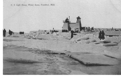 Circa 1909 scene of ice piled up around the Frankfort South Pier Lighthouse and fog signal building. (Photograph courtesy Benzie Area Historical Museum.) Back to the edition of: Mar/Apr 2012