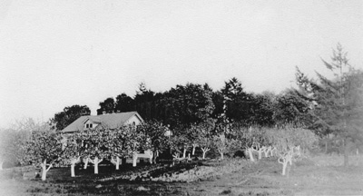 These two photos, taken in 1933, show Oscar Browns expansive orchard, vegetable and flower gardens, and a field of oats and clover at Browns Point Light Station.