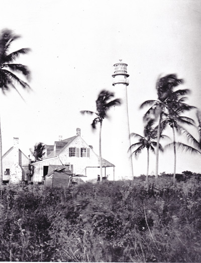 This 1880s image of the Cape Florida Lighthouse may have been taken at the time the lighthouse was in the process of being abandoned. If you look closely, the shades of curtains are drawn in the lantern room, which gives the impression that the lens was still in the tower. (Lighthouse Digest archives.) Back to the edition of: May/Jun 2013