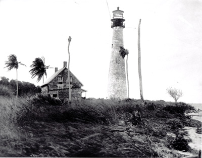 The Cape Florida Lighthouse had been abandoned for quite some time when his photo was taken. The keeper’s house is in a state of rapid deterioration and a hurricane had damaged the trees. (National Archives photo.) Back to the edition of: May/Jun 2013